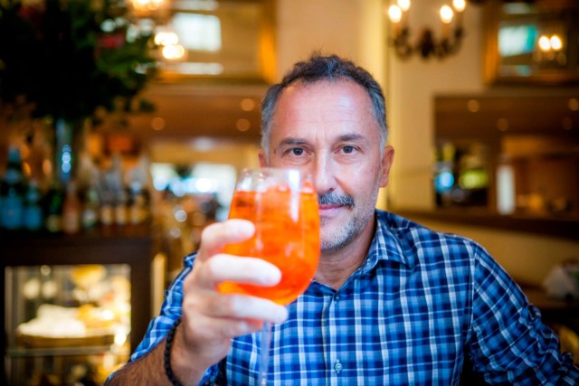 Η –πικρή- αλήθεια είναι πως αγαπούσα την ώρα του απεριτίβο πριν καν μάθω ότι λέγεται έτσι, και ανέκαθεν αναζητούσα σημεία μέσα στην πόλη όπου μπορώ να την απολαύσω. Κάπως έτσι βρέθηκα στο Dry και συνάντησα το Γιάννη, ο οποίος παρότι γευόταν το Aperol Spritz του με περισυλλογή, δέχτηκε χαμογελαστός να φωτογραφηθεί μαζί με το ποτό του! Αμέσως ξεκίνησε να ποζάρει για το φακό του Πάνου Γεωργίου ενώ μας αφηγήθηκε ιστορίες από απογεύματα με Aperol Spritz.
