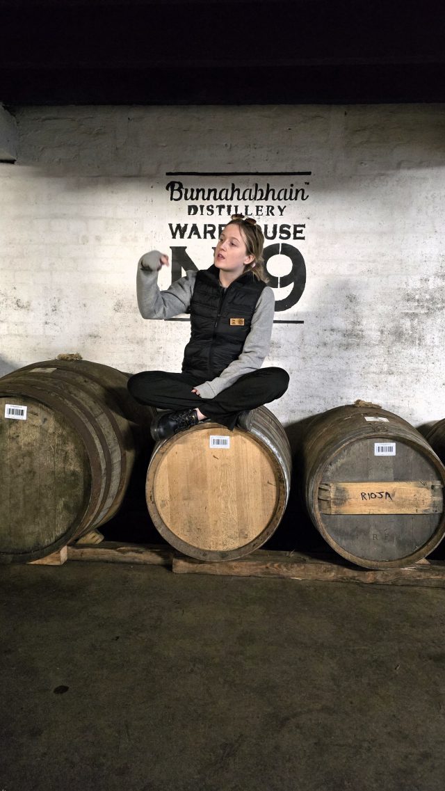 Σε μια από αυτές τις αποθήκες, την περιώνυμη #9, μας οδήγησε η Tilly για να μας προσφέρει για δοκιμή ουίσκι από τα βαρέλια τους. Εκεί δοκιμάσαμε τρία μη-τυρφώδη Bunnahabhain και ένα έντονα τυρφώδες από βαρέλι Staoisha –αυτό ήταν το εμπορικό όνομα που χρησιμοποιούσαν ανεξάρτητοι εμφιαλωτές για τα βαρέλια Bunna που περιείχαν έντονα τυρφώδες ουίσκι-, όλα πολύ διαφορετικά μεταξύ τους και η δοκιμή, σε συνδυασμό με την περιήγηση στην ημιφωτισμένη αποθήκη και την επεξήγηση της οδηγού μας, δημιούργησαν μια εμπειρία μοναδική!