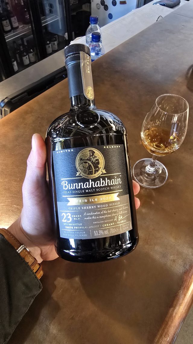 Μετά το πέρας της ξενάγησης, οδηγηθήκαμε στο visitor centre του Bunna, όπου με θέα τη θάλασσα, δοκιμάσαμε ένα σωρό εξαιρετικές εμφιαλώσεις, μεταξύ αυτών, το Bunnahabhain 23 Year Old 1999 Triple Sherry Wood Finish – Fèis Ìle 2024, το Bunnahabhain Double Wood: New Acquaintance και το Bunnahabhain 21 Year Old – 2024 Edition.