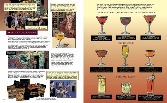 Ο σπουδαιότερος ίσως ερευνητής της ιστορίας των μπαρ και των κοκτέιλ, με εκατομμύρια λέξεις σε άρθρα στα πιο σημαντικά διεθνή δημοσιογραφικά μέσα, δύο θεμελιώδη γραπτά πονήματα που έδωσαν ιστορική υπόσταση στον χώρο των ποτών, αλλά και την πληρέστερη, ίσως, σχετική εγκυκλοπαίδεια στο πλαίσιο της σειράς Oxford Companions, κυκλοφόρησε πριν λίγους μήνες το τελευταίο του εκδοτικό εγχείρημα. Ο David Wondrich καταφέρνει αυτή τη φορά να ξεδιπλώσει πέντε αιώνες ιστορίας του κοκτέιλ και, με τη συνδρομή του κομίστα Dean Kotz, να τους αποδώσει σε ένα καλαίσθητο κόμικ, αποδεικνύοντας ότι η σοβαρή έρευνα δεν εξαρτάται από το μέσο, αλλά από τη μέθοδο και τη βαθιά γνώση του αντικειμένου.