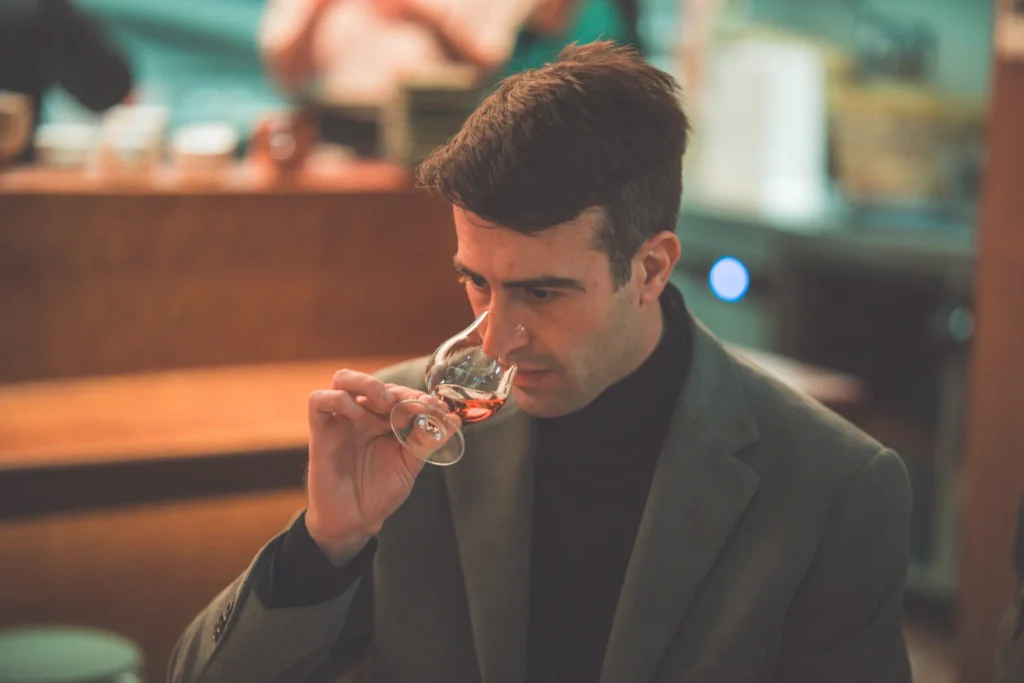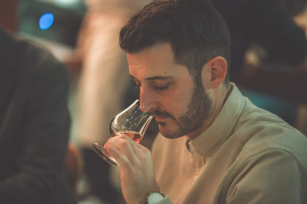 Βαθύ χάλκινο χρώμα, με έντονα αρώματα μελάσας και ξύλου, ίσως βρεγμένου και καμένου. Λίγες πτητικές νότες κόλλας και ασετόν, ενδεχομένως από τα αποστάγματα άμβυκα, λίγα αποξηραμένα φρούτα, μαζί με καμένα αιθέρια έλαια πορτοκαλιού, ταμπάκο και σοκολάτα, είναι τα πρώτα που η ομήγυρη συμφώνησε πως αναγνωρίζουμε. Στη συνέχεια αντιληφθήκαμε εντόνως αρώματα από κεράσι, καρύδα και νύξεις δέρματος.