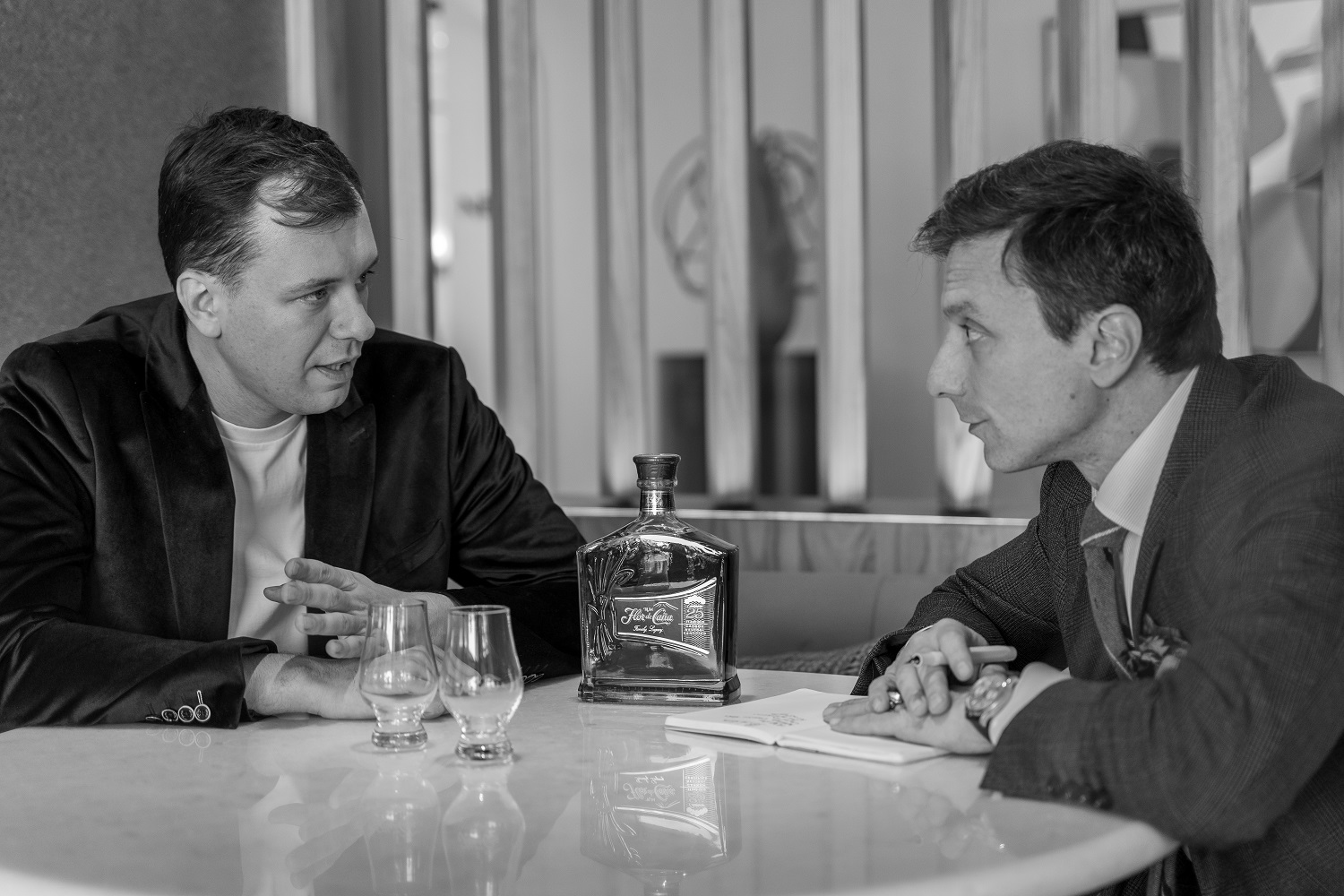 Ο Αναστάσης Καραφουλίδης, brand manager του Flor de Caña 25 και ο Γιάννης Κοροβέσης