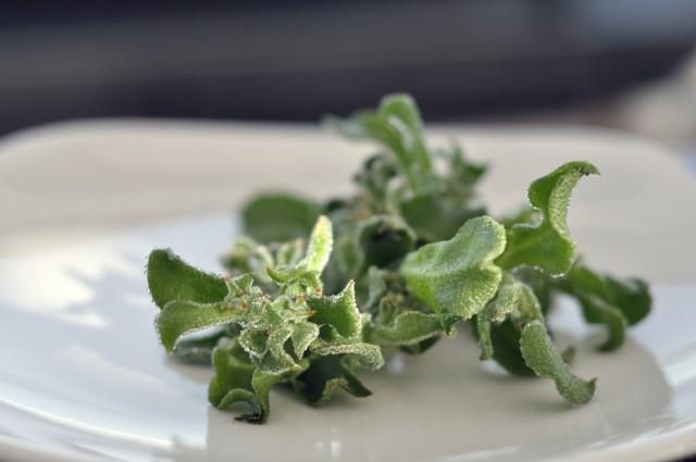 Τα παχιά και δροσερά του φύλλα είναι τραγανά, ζουμερά και πολύ δροσιστικά. Όταν τα δοκιμάζεις είναι αλμυρά κι ελαφρά λεμονάτα έτσι που νιώθεις πως γεύεσαι κάποιο θαλάσσιο φυτό.