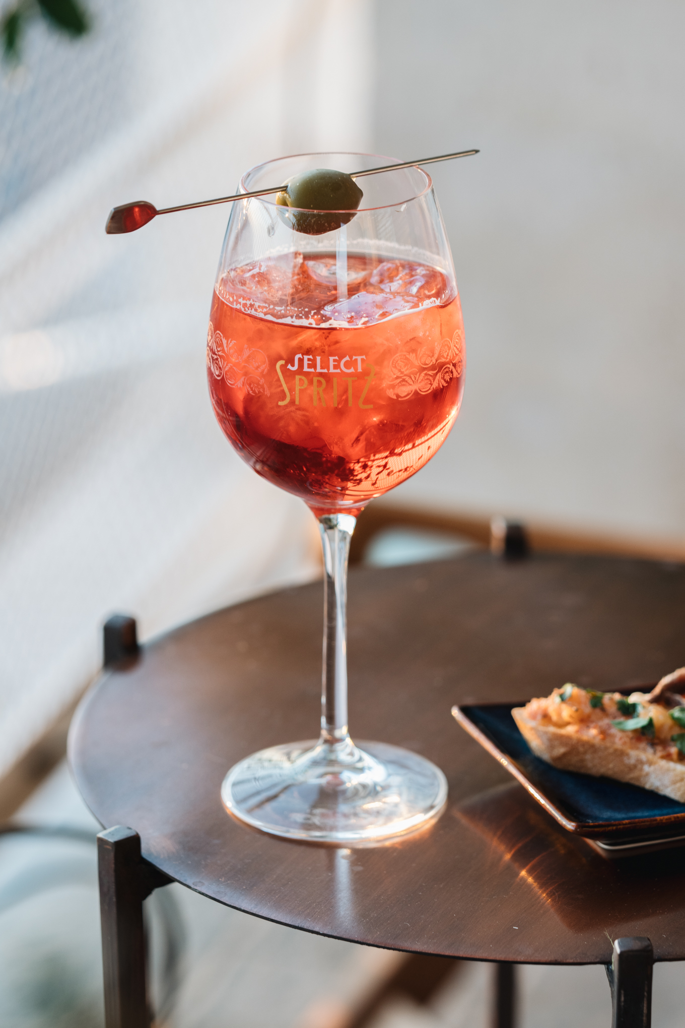 Κάτω από τον ήλιο της Μεσογείου και πλάι στα βενετσιάνικα κανάλια, περιδιαβαίνουν οι κάτοικοι της Βενετίας τα στενά σοκάκια της, σταματώντας σε μικρά μπάκαρο, σε οστερίες δηλαδή, μέρη που σερβίρουν όμπρα —μικρά ποτηράκια με κρασί— με απλό φαγητό και τσικέτι. Σε τέτοια (wine) bar πιθανότατα ήταν που εντοπίστηκε για πρώτη φορά κόσμος να κραδαίνει ερυθρωπά Spritz. Μαντέψτε· το Spritz τους είχε prosecco, σόδα και Select Aperitivo! Και έχει μέχρι και σήμερα τα ίδια συστατικά. Εκ των ων ουκ άνευ στο βενετσιάνικο Spritz ήταν η ελιά, περασμένη σε μια ξύλινη καρφίδα.